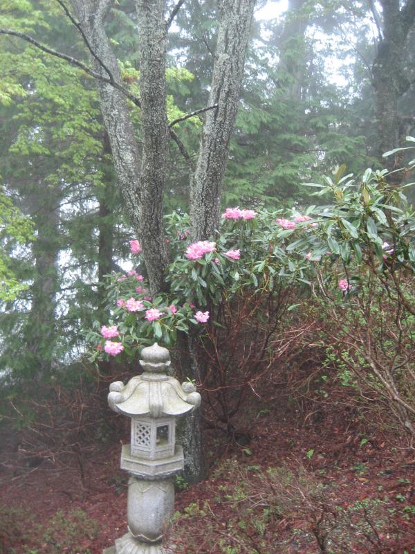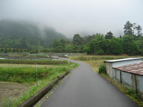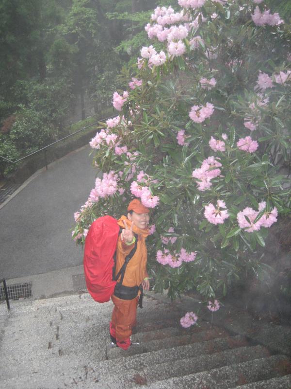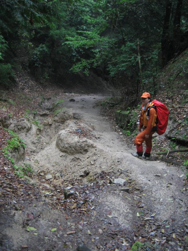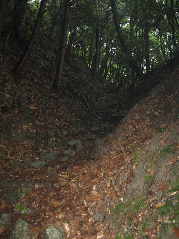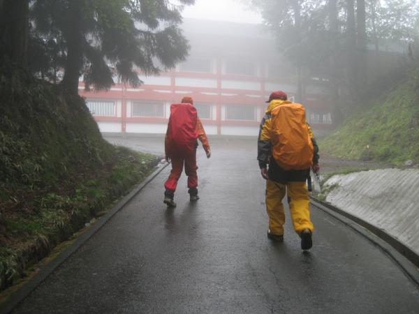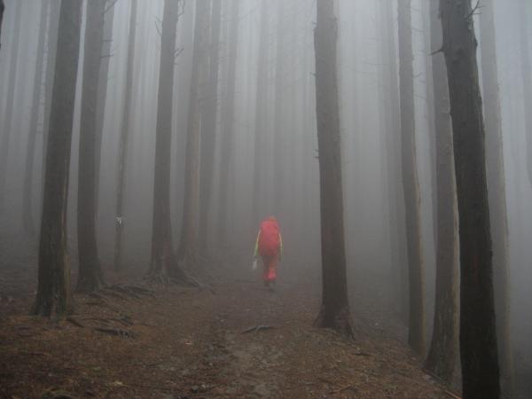 - 雨の為 霧 結構暗いです 下りの坂本ロープーウェイ沿いの道はあまり整備されていません
