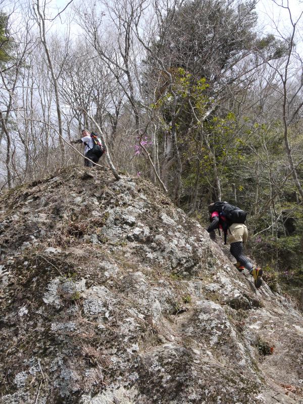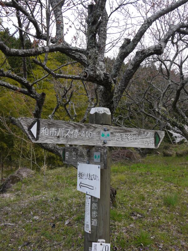 - 和市の駐車場(30)堤石峠(45)鎖のある岩場(70)山頂・・・昼食・・・(15)山頂直下の岩壁(40)大神田の里(55)和市