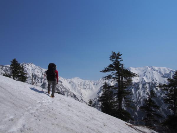 今回のルートは馬場島から早月尾根。北アルプス三大急登の一つであり、マゾ尾根の異名を持つ手強いルートです。登り口から頂上までの標高差は約2300m。初日に泊まる早月小屋まででも1500m近くあります。次の日にこの標高差を一気に下りるのかと思うと、出発の時点で心が折れそうになりましたが、当日は快晴!登山道にはカタクリやイワウチワ、ショウジョウバカマやエンレイソウなどが咲き乱れ、終始楽しく登ることができました。