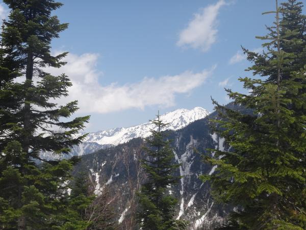 あっという間に山荘まで戻ると、上高地を挟んで手前に明神岳が居座っていました。ああ、昨日がこんな天気だったらなあとつくづく思います。ロープウェイ駅に近づくにつれ、右手には槍の矛先が見えてきました。二年前に越えたキレットも相変わらず切れ落ちていました。やはり北アの千両役者という感じです。こんな景色に囲まれていると荷物の重さをすっかり忘れていました。
