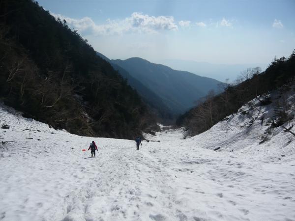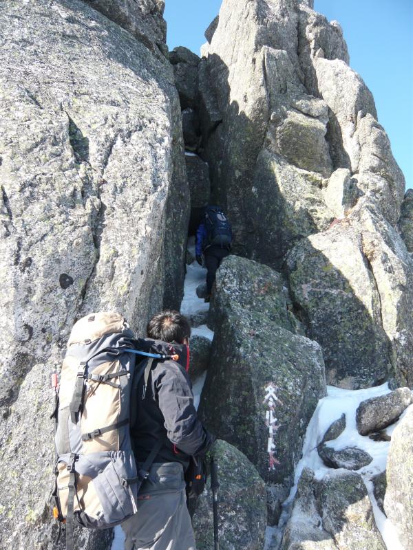 比較的雪が解けていたので慎重に進めば問題ないのですが、下をみると恐怖心が増します。
