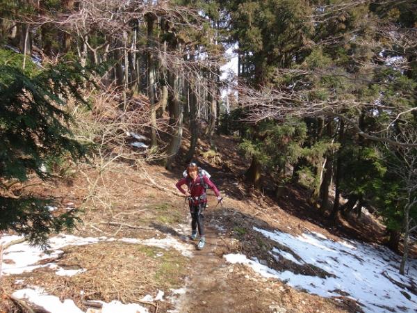 以降雪の残る場面もあるので軽アイゼン・スパッツがあると安心
