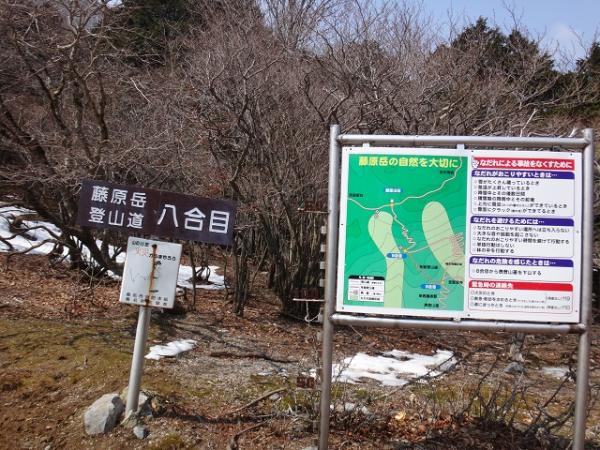 - 神武神社登山口 ⇒60分⇒ 6合目 ⇒20分⇒ 8合目 ⇒50分⇒ 藤原山荘 ⇒20分⇒ 藤原岳1120m ⇒90分⇒ 神武神社登山