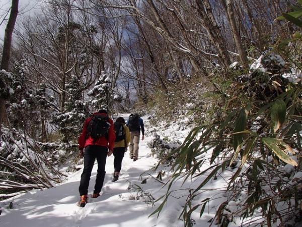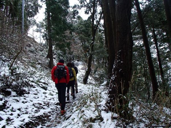 - 前日に雪が降ったのか、予想外の積雪で登り始めはドロドロの道、上は完全な雪道でした。
