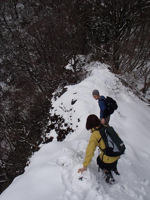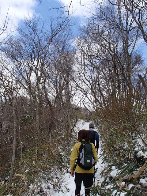 東峰の頂上まで行き、西峰まで足を伸ばそとしましたが、積雪していることで足場が悪く、初心者がいたこともあってそこで引き返しました。