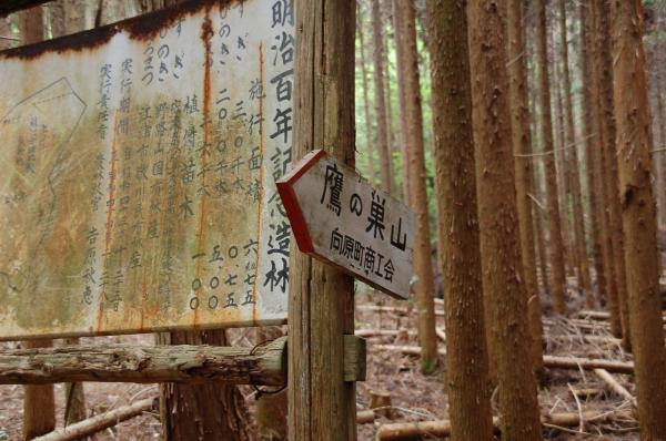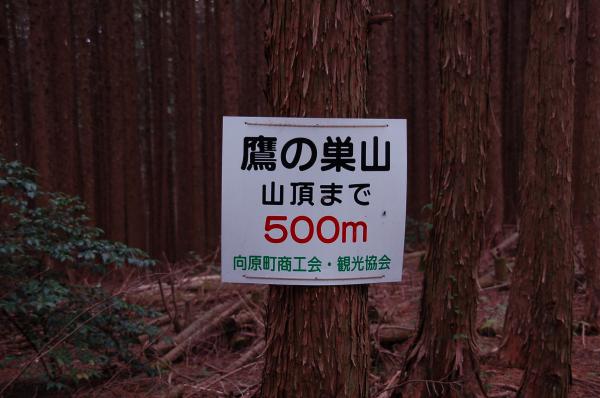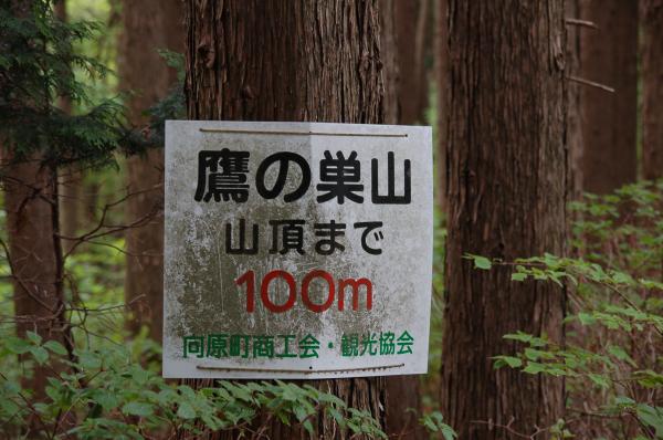 - 登山口→(15分)→久芳峠→(25分)→カンノ木山→(20分)→久芳峠→(25分)→鷹ノ巣山→(25分)→登山口