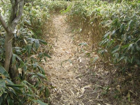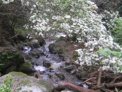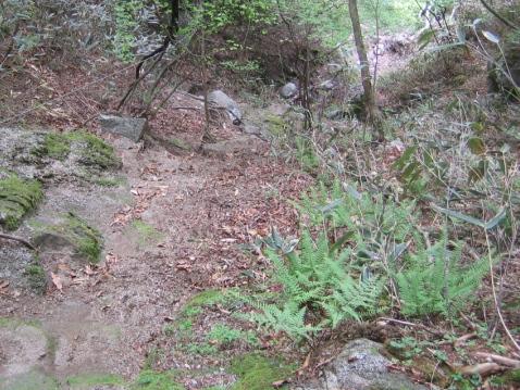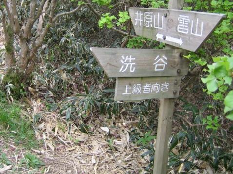 井原山のコース中、最も好きなコースになりました。新緑も美しく、沢を何度も渡りながら進むのは本当にウキウキします。もう2年も沢登りに行っていないので、早く沢に入りたいものです。今回は最後の分岐(?)を右の滝側に入ってみました。途中までは登山道らしいかんじがあったのですが、やはり途中からは道は歩き難くなり、突き当たりの滝はいい感じなのですが流木が引っかかっており、ちょっと残念な感じがしました。多少水しぶきを浴びながら滝の右側をちょっと強引に突破し、少し進むと沢は涸れ、笹薮の尾根に登っていきます。尾根に着くと左に洗谷コースを見ながらの薮コギに。およそ20分位で登山道に飛び出しますが、沢登りのコースとしてはあまり楽しくないので、やはりコース通り進むのがいいでしょう。今年は残念な事にミツバツツジが良くなく、殆ど花をつけていないようでした。下りは洗谷コースをちゃんと進んでみましたが、出だしの急な下りの部分は注意が必要で、雨上がりなどはかなり滑りそうです。その後はのんびり小花などを見ながら楽しく下れました。いい登山になりました。