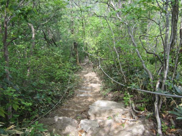 急な箇所もあるので低山ですが、ひざが不安な方はストックやサポートタイツなどを使うとよいと思います。