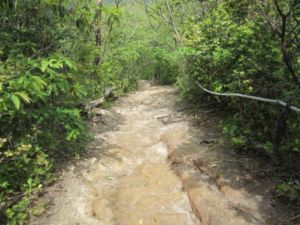 序盤はかなり整備されている登山道をひたすらなだらかに歩く感じでしたが、山頂に近づくにつれて、一気に登りきる道となっていました。下りに関しても同様に山頂付近はとても急な下りとなっていました。