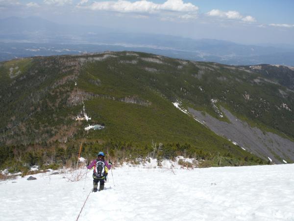 ちょっと、不安なので最短ルートの7合目まで車で入りピストンで残雪を楽しみました。