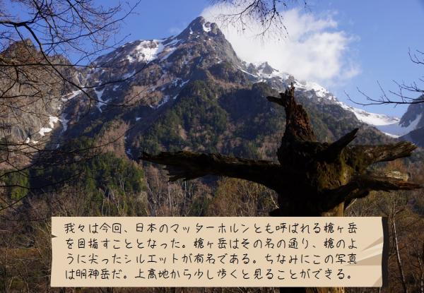 - 上高地から横尾間はほとんど雪はありません。横尾少し手前から梓川沿いの迂回路を歩くことになります。