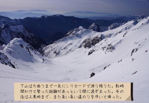 槍ヶ岳の登頂は雪の状態が非常に悪いため断念しましたが、それでも最高の景色を堪能できたので、素晴らしい山行となりました。