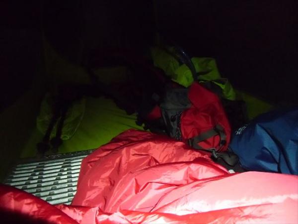 しかし、シュラフがナンガのオーロラライト350DXだったので衣類を工夫すれば十分暖かったですね。