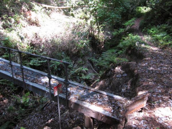 途中、権現川への下りが難路だったり、渡渉が丸太橋だったりと