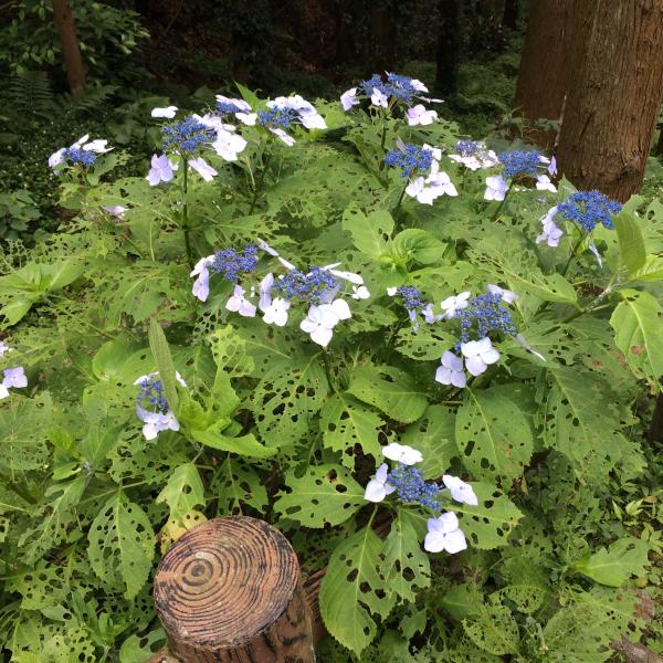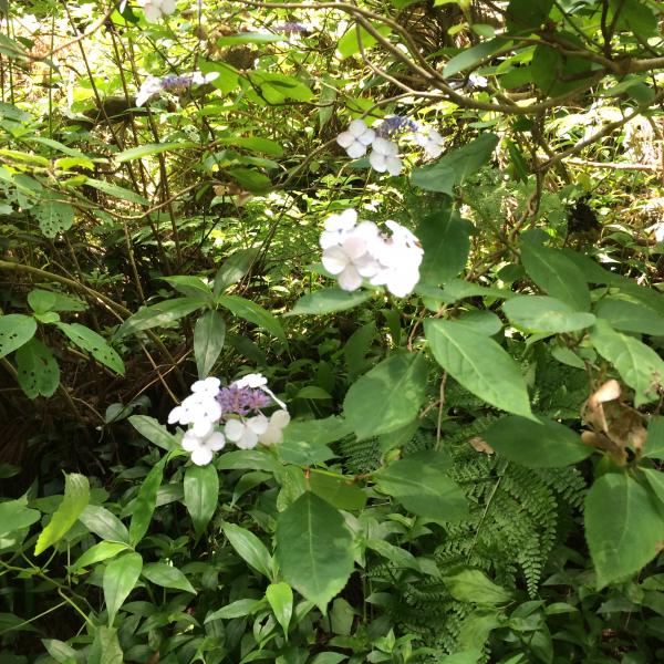 登山遊歩道入り口に入り、林道を歩いていると涼しい気持ちのよい風やきれいな紫陽花が出迎えてくれました。
