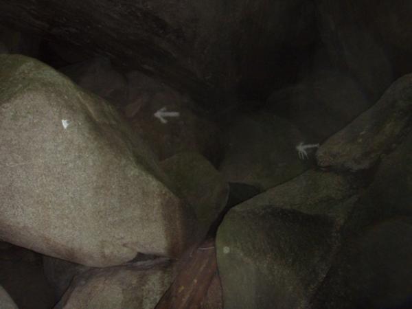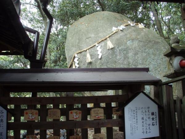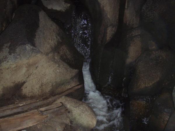 磐船神社に到着すると、社務所で荷物を預かってもらって「岩窟めぐり」に挑戦してみました。所要時間約20分。巨岩の積み重なった所の地下に降り、狭い場所で岩をよじ登ったり下ったり所々で暗闇だったりする所は手探りで進むのですが、奥に滝があったり地下水路の上の丸太橋を渡ったり、岩の隙間を滑り降りたりするので、結構スリリングです。最後は天の岩戸にたどり着くのですが、日本神話の世界が凝縮されているようで興味深い所でした。