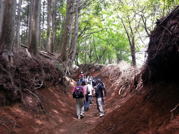 道は広く、迷うようなところはほとんどないので、初心者や子ども連れでも安心の山ですが、段差が大きかったり、急で滑りやすい箇所があったりするので、注意してください。