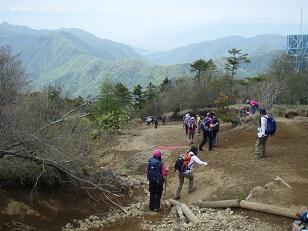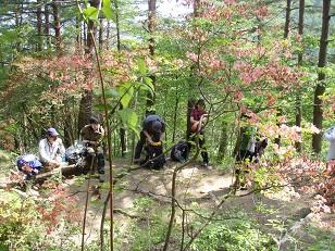 下山も足場が滑るので、大蔵ガイドの“忍者歩き”指導を全員パスして下山です(笑)