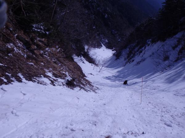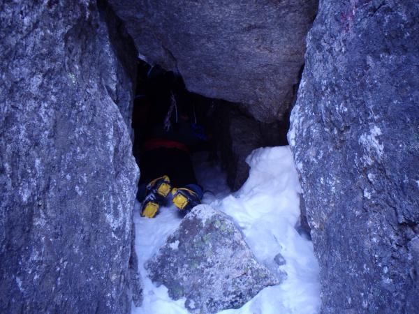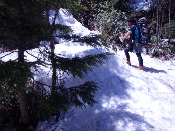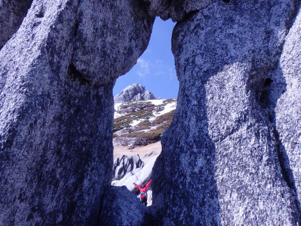げえろ岩は冬道の岩中央の道。大天井岳の登りは夏道のトラバースではなく、直登ルートで。