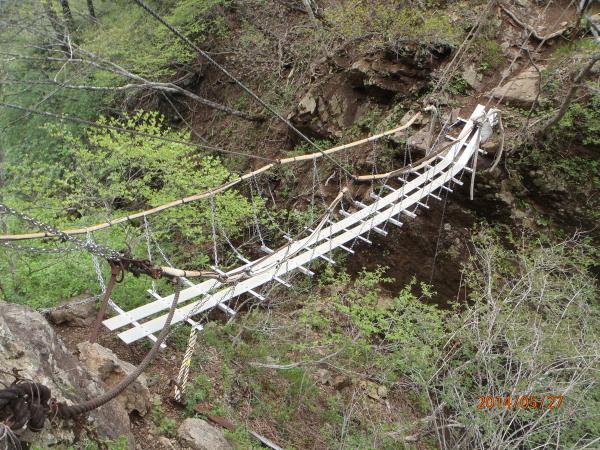 - 文化洞トンネル(10)~長浜分岐(60)~毛無山(40)~吊橋(20)~十二ヶ岳(40)~小沢(20)~桑留尾(30)~文化洞トンネル