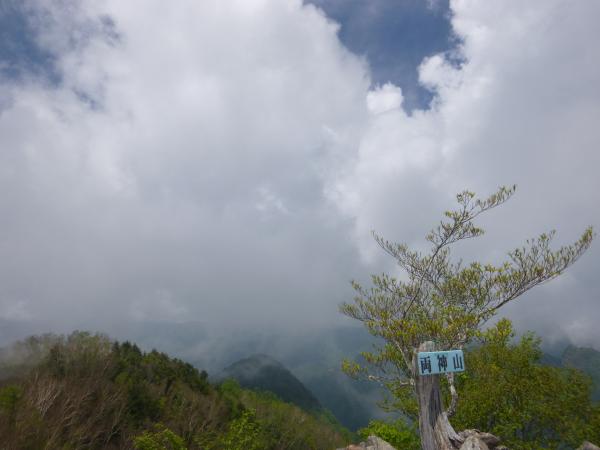 山頂では雲がとれて青空が見えました。狭い岩場の山頂なので休憩中は足元に注意しましょう。
