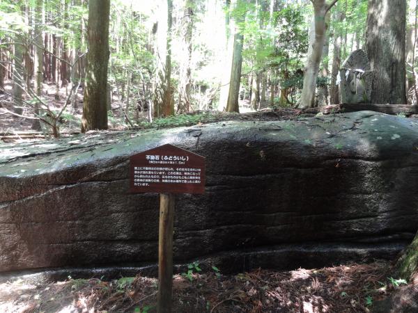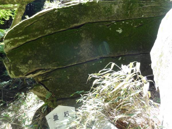 それから山名根拠の太刀割石へ。直径7mの大石が刃物で切ったように割れて