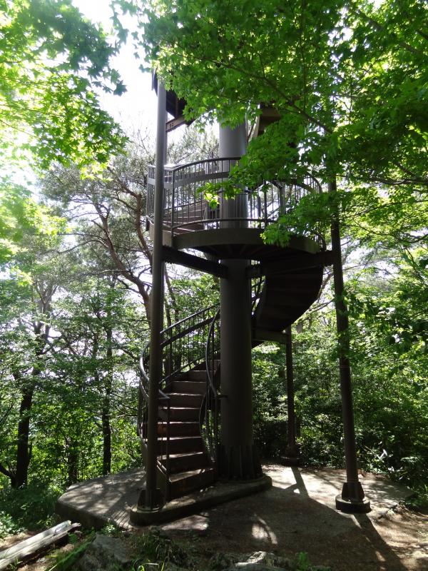 山頂が見えてきます。山頂には展望塔があり上がると、山々のパノラマ風景