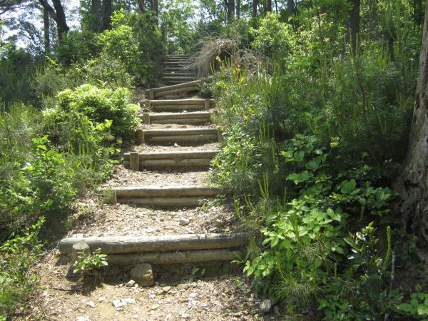 - 階段が多く、登山道の半分以上が階段でした。