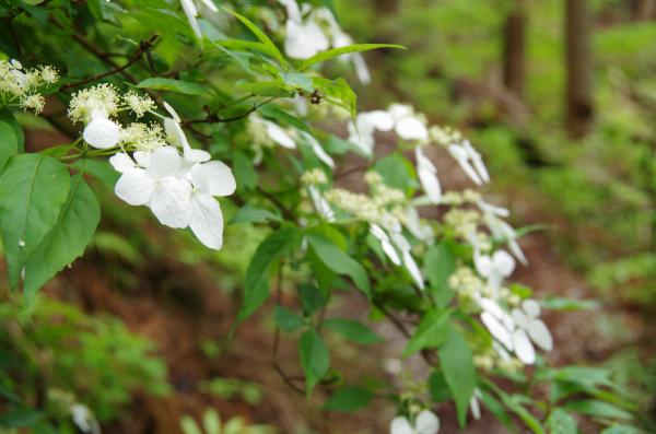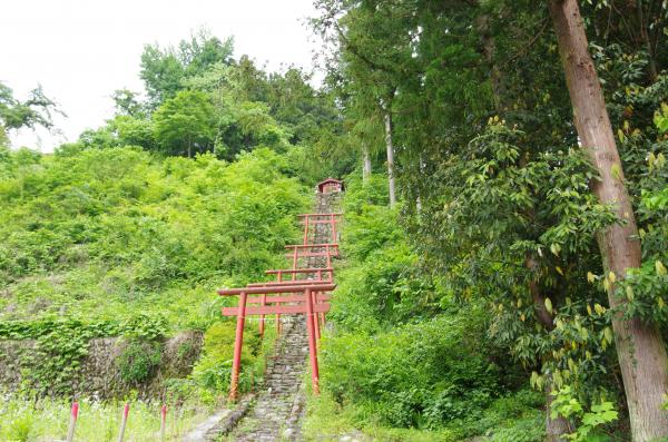 札所の横を抜けて更に砂利道。しばらく川沿い、その後、左に折れた登山道を進みます。つづら折りの道にさしかかる頃には、聞こえてくる重機の音。