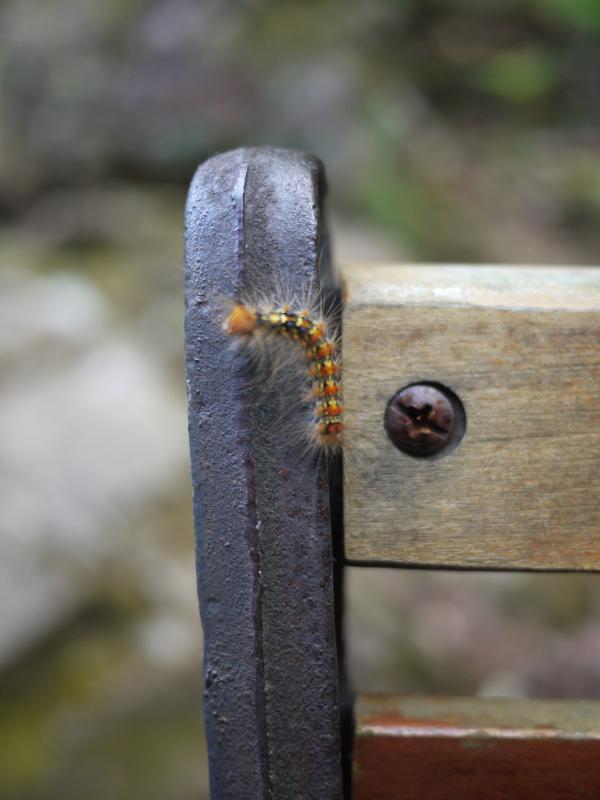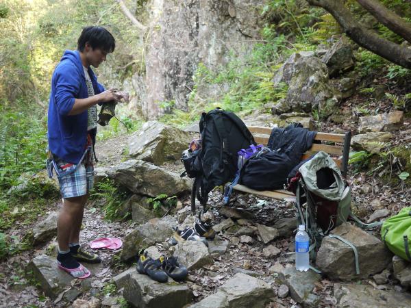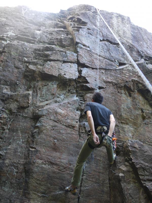 写真の通り今の時期は毛虫が多いので、懸垂下降で毛虫を岩から弾いてから登ることをオススメします。