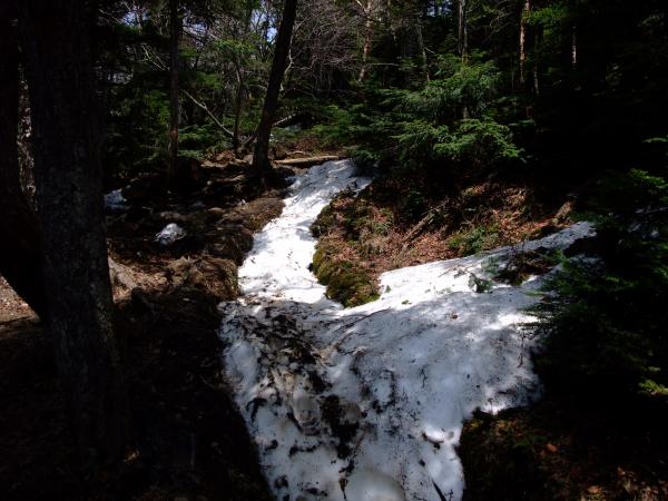 - 三合目~四合目はアスファルトの車道歩きです。四合目~八合目すぎまで急坂が続きます。雪は八合目をすぎると登山道に出てきますが、融けかけの雪なので問題なく歩けます。