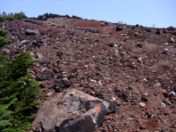 四合目から先、少しの樹林帯を除けばあとは日差しをまともに受けるコースのため、出発時に水を多めに用意して登った方がいいと思います。上に水場はありません。