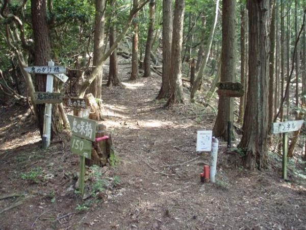 - 大乗寺・登山口~30分~園林寺跡~10分~鬼の架け橋~5分~金山(540m)~40分~馬頭(502m)~50分~大乗寺・登山口