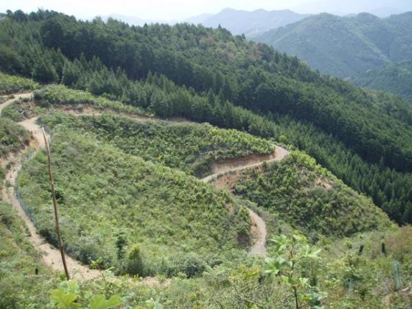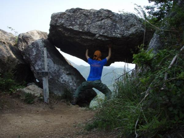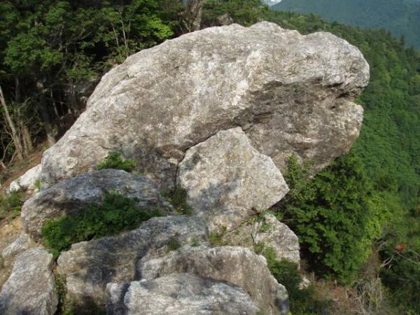 しばらく登って行くと道が3方向に分岐しており、左が「鬼の架橋」中央が「金山城址」右が「トンネル」となっていたので、左の道を選択。安藤広重も浮世絵に描いたという「鬼の架橋」は見事な景観でした。横にある巨岩から176号線を見下ろすと、かなり高度感があってドキドキします。
