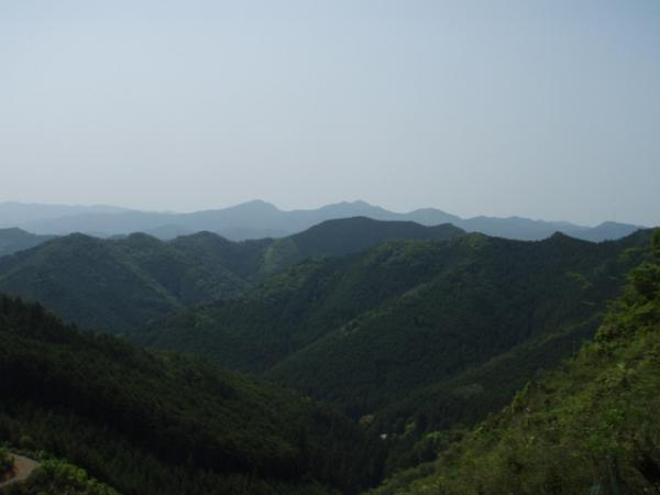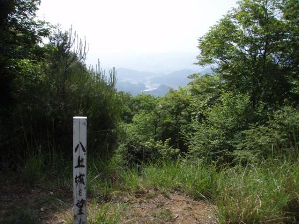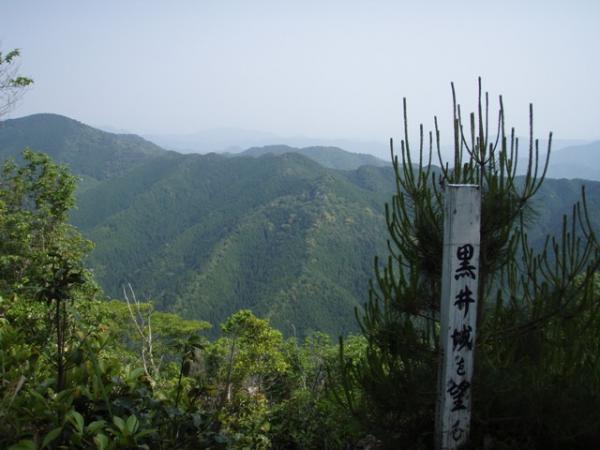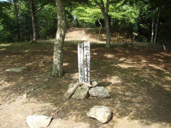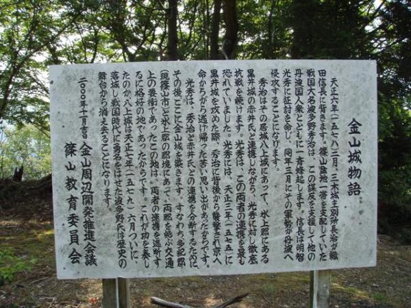 右手にある道を登って行くと、山頂になっている金山城址にすぐに到着。金山城は2度目の丹波攻めの際に明智光秀が一夜で築城した言われており、部分的には自然石を利用した石垣なんかも残されており、歴史を感じられてなかなか良い雰囲気でした。山頂から東に見えるのが、黒頭峰、三尾山、夏栗山…。