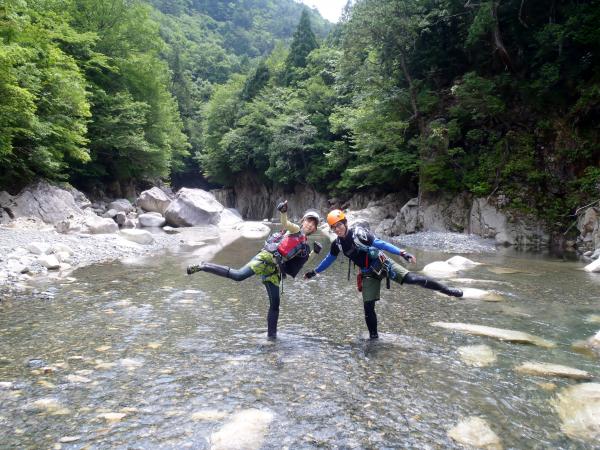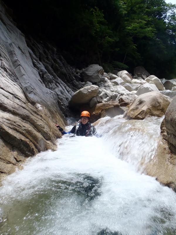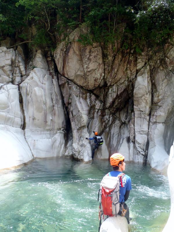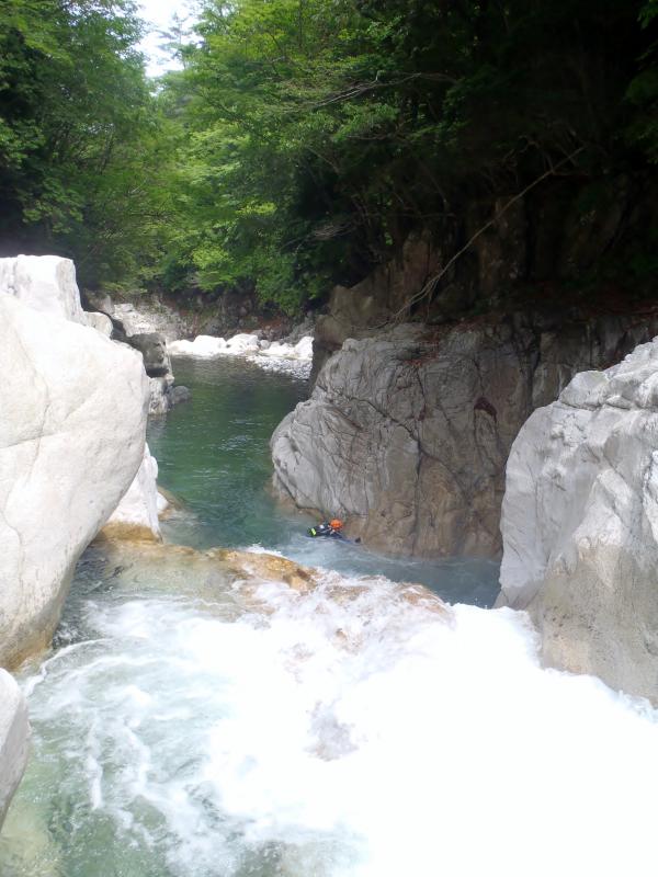 が、最後の40mの長瀞はロープの長さも足りないし、泳ぐお2人を遠くからお見送りしました。笑