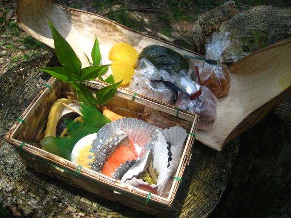 なんとか十丈王子の横の広場で、ちょうど横のヘビのお昼ご飯タイムでドキドキしながら、ご当地お弁当をほおばりました。