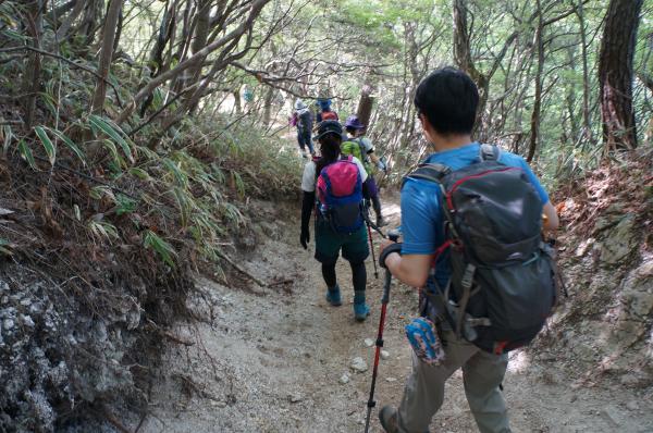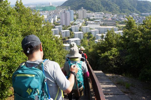 - 1日目:、須磨浦公園(35分)旗振山(90分)横尾山(20分)須磨アルプス(230分)菊水山(90分)鍋蓋山(50分)市が原(60分)新神戸
