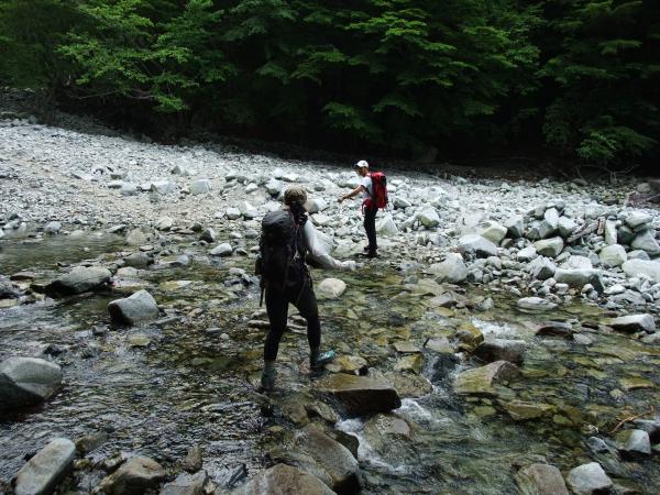 ゴーラ沢出合では、沢の中を渡ります。