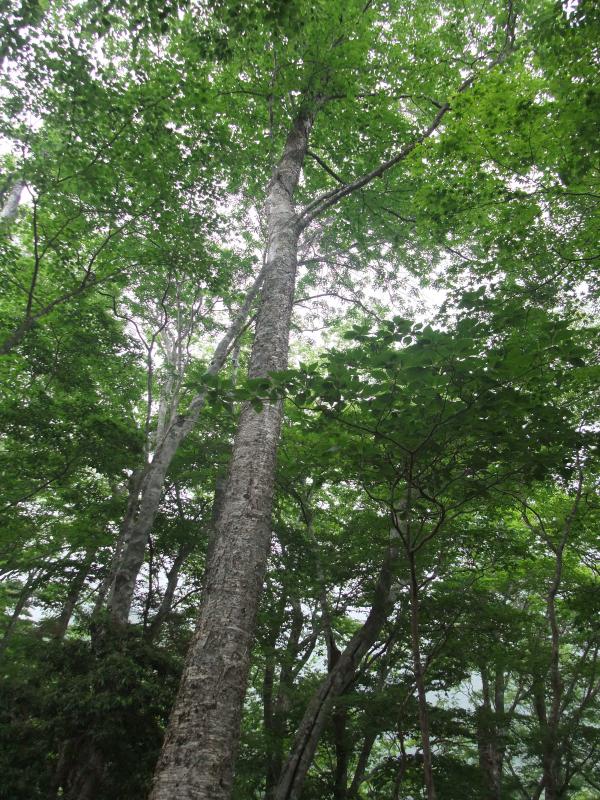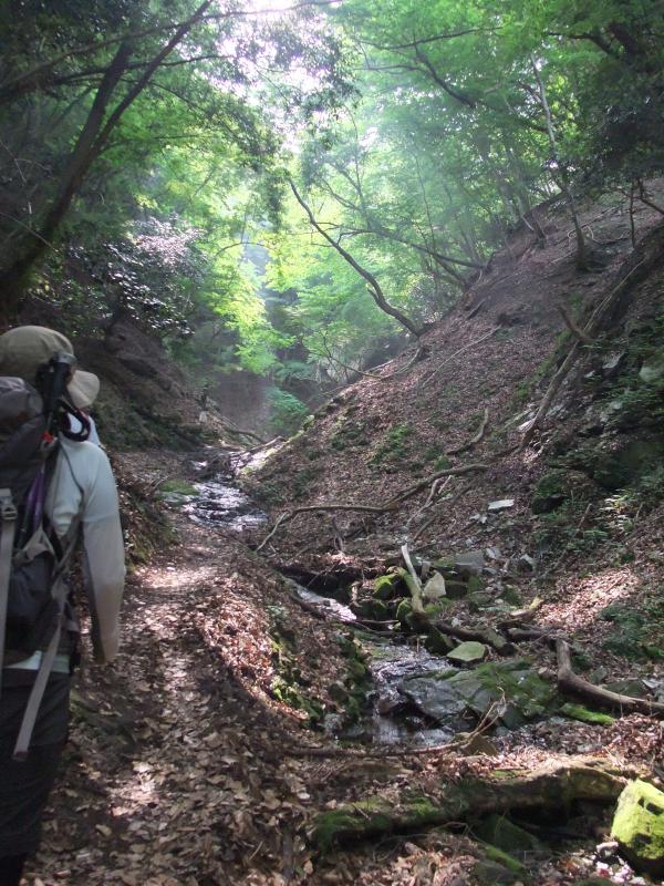 登り始めは沢沿いで、緑の中を進んでいきます。