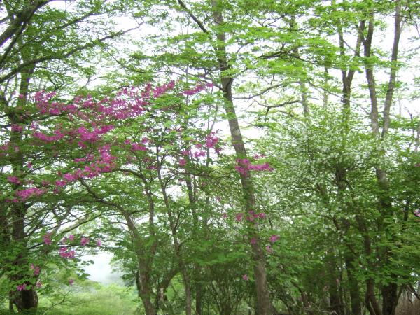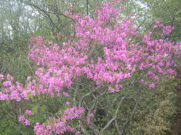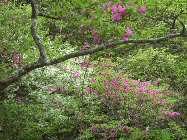 やがて、ツツジ新道となり、白と赤紫の花が見え始めてきました。