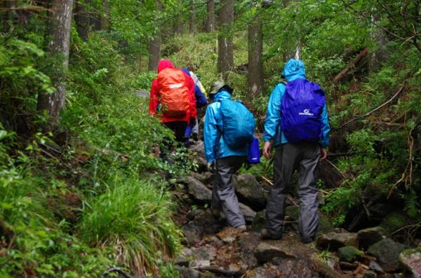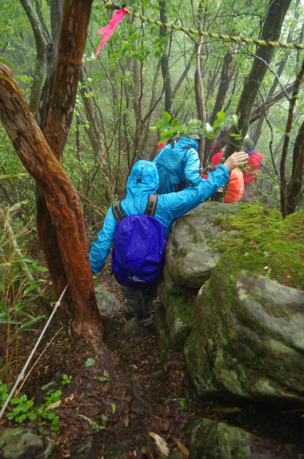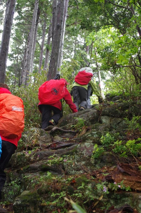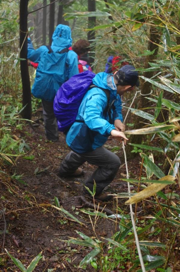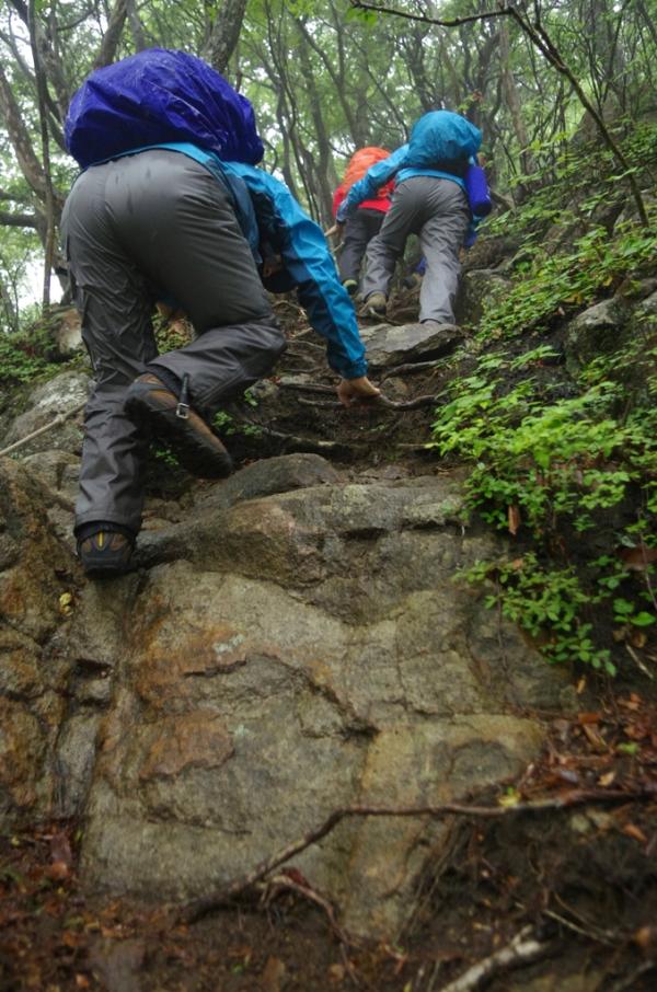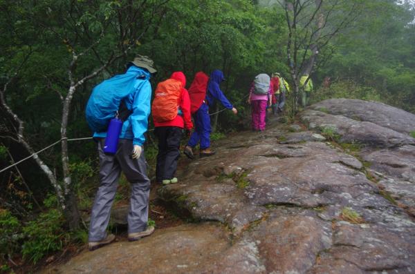 - 朝からの雨で岩も地面も滑りやすいコンディションでした。登り、下り共に急斜面が続くので転倒・転落には十分注意が必要です。