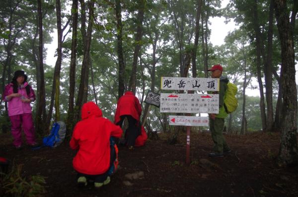 兜岳から鎧岳の間は急な下りの連続で、これまた雨で滑りやすくなっており、登りよりも緊張しました。