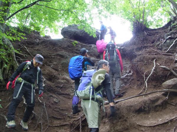 本来晴れていればもっと展望も良く、鎖場ももう少し楽に通過できたでしょうが、雨の中鎖場を通過するというのは中々経験出来ません。私もガイドやお客様の歩き方を見てとても勉強になりました!