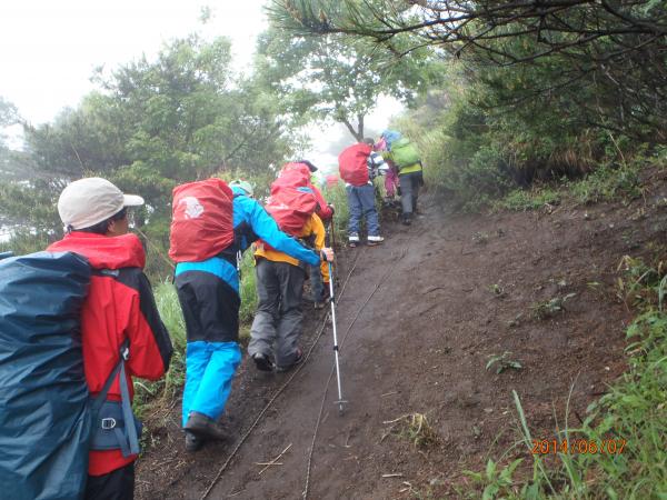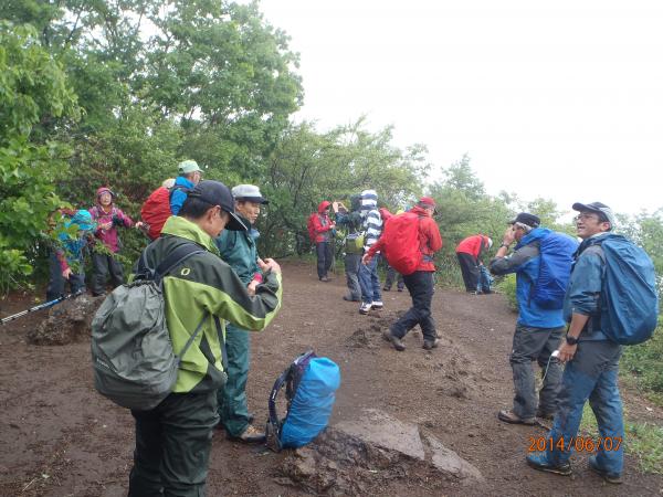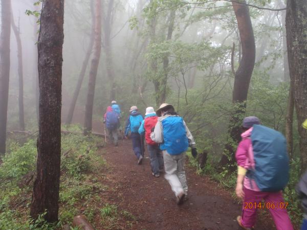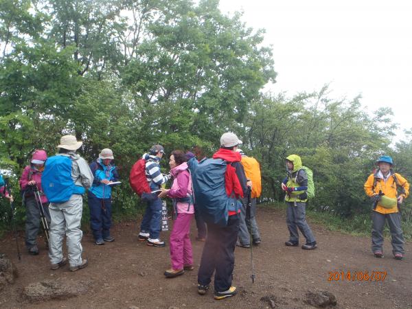 好日山荘登山学校 実技講座/応用編 十二ヶ岳に同行させていただきました。 朝より雨が続き、御坂山塊もガスが発生していたため展望もありませんでした。 本当は大きな富士山の展望が素晴らしいので、ぜひ見ていただきたかったのですが、それはまたの機会ということで… 毛無山から十二ヶ岳は山と高原地図では《中~上級者向け》になっています。 雨が降り続いていたので十二ヶ岳まで行けるのか不安がありましたが、参加者の皆様の強い意志と二人のガイドさんの的確なアドバイスもあり、予定していたコース通り歩くことができました。 毛無山での滑りやすい路面にも負けず、連続する急な岩場にも考えながら取り組む参加者の皆様の姿勢から多くのことを学び、考えさせられる一日となりました。 これだけ多くの方と登ることは初めての経験だったので、当初は不安ばかりでしたが《自分の命は自分で守る》という意識を皆様が持たれていたので、不要な心配だったと感じました。 また機会があれば、皆様と山に登る楽しさを共有できたらうれしいです! 帰りのバスでの小林ガイドのワンポイントアドバイスも皆様の糧になったことと思います。 参加者の皆様、本当にありがとうございました。