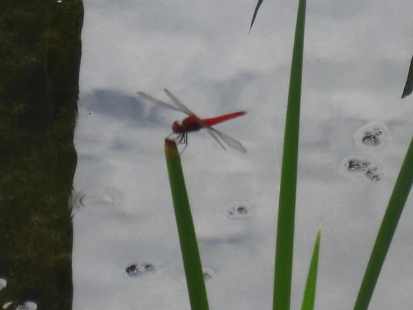 手前の広場では、野菜を育てており、池にはメダカやアメンボ、赤とんぼがいました。