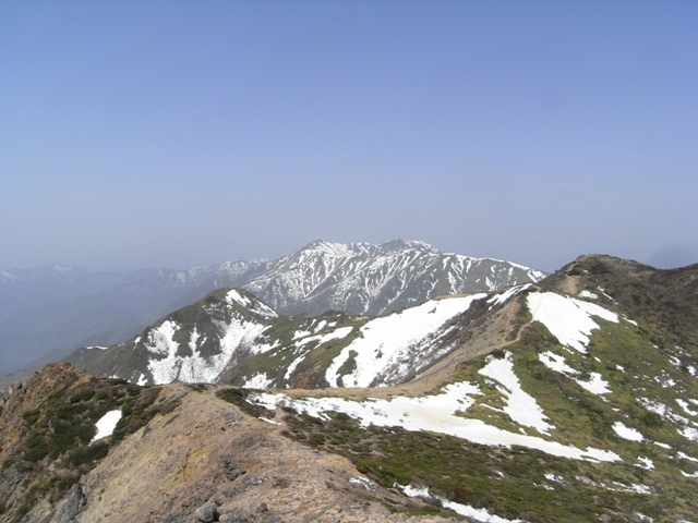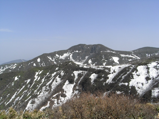 隠居倉に向かう熊見曽根や清水平から三本槍岳には腰高まで雪が残ってました。