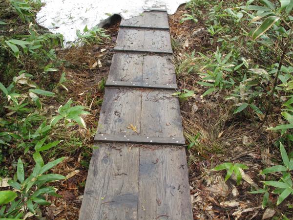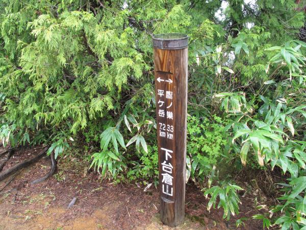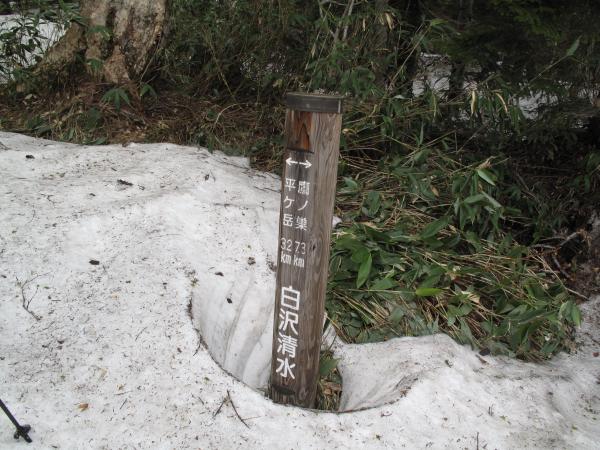 - 登山口-(120分)-下台倉-(60分)-台倉山-(70分)-白沢清水-(80分)-池の岳-(30分)-平ヶ岳-(30分)-池の岳-(70分)-白沢清水-(60分)-台倉山-(60分)-下台倉山-(100分)-登山口
