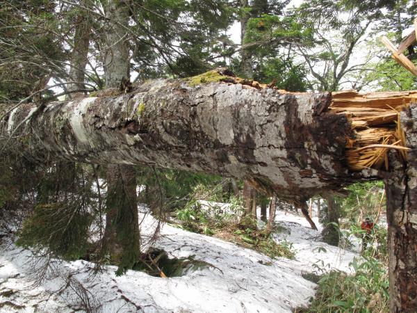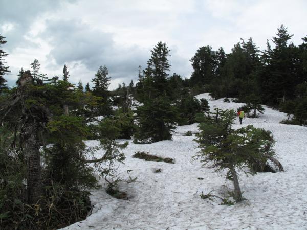 広い尾根道で夏道が埋まっており、ルートが分かりづらいです。