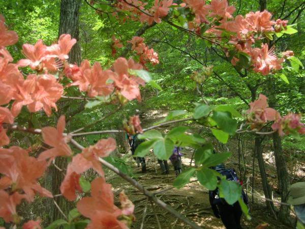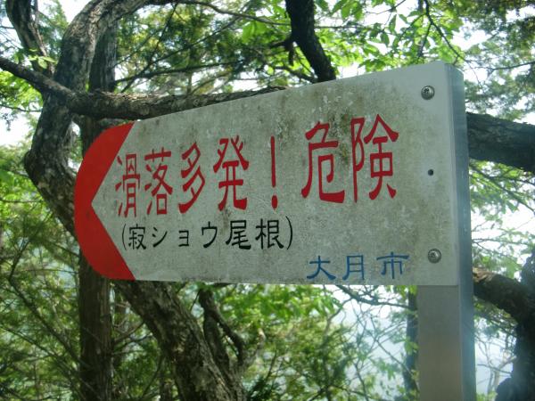 - 寂ショウ尾根は標高1,200m位から1,550m位まで岩場やヤセ尾根、急登が続くので滑落や落石等に注意が必要です。